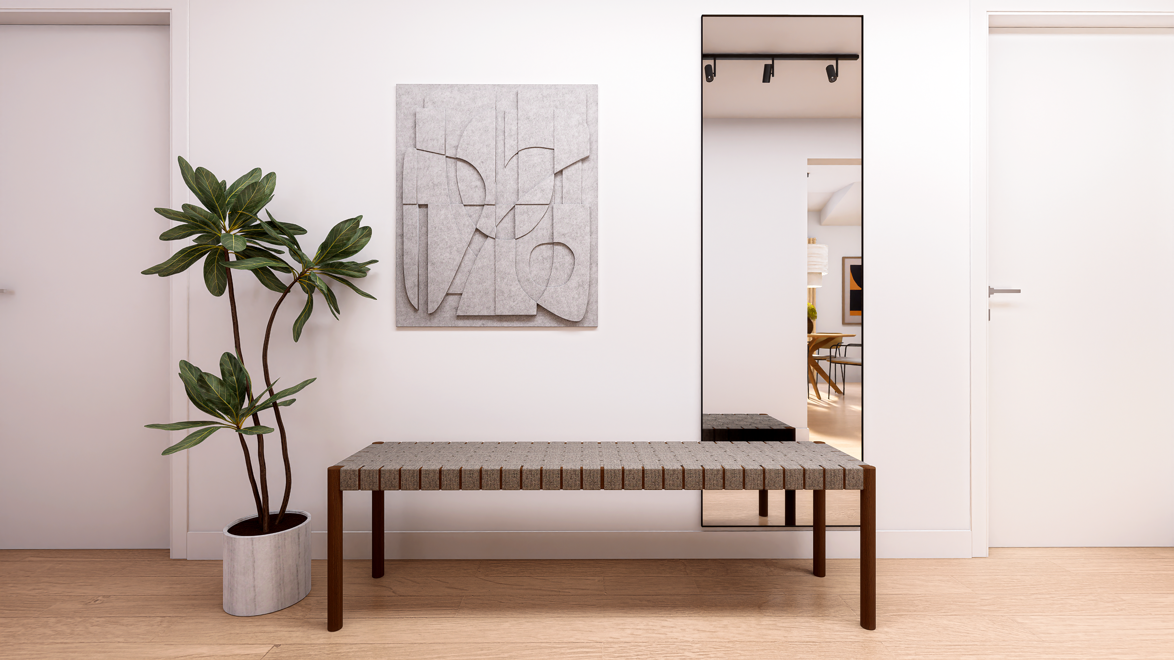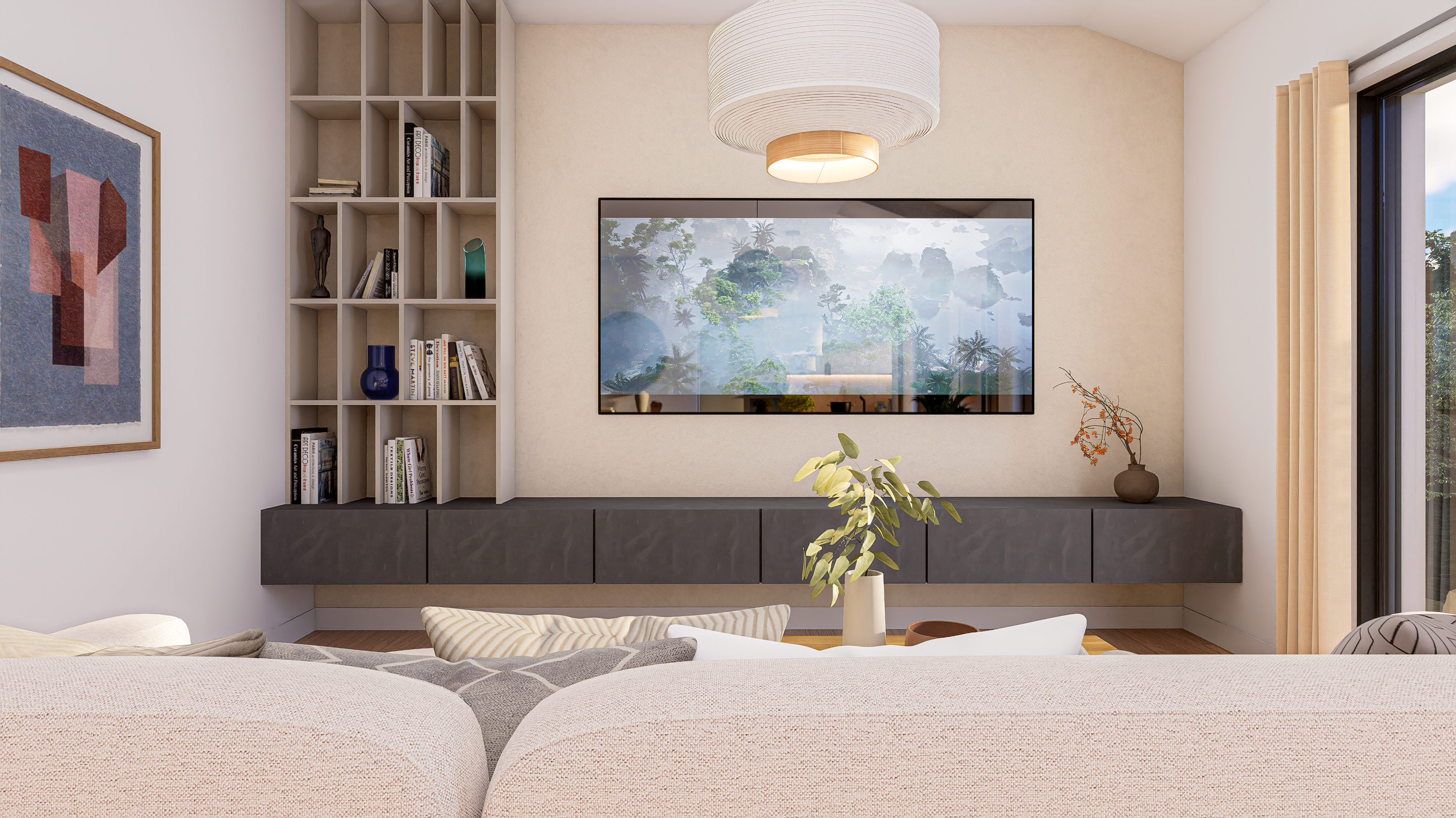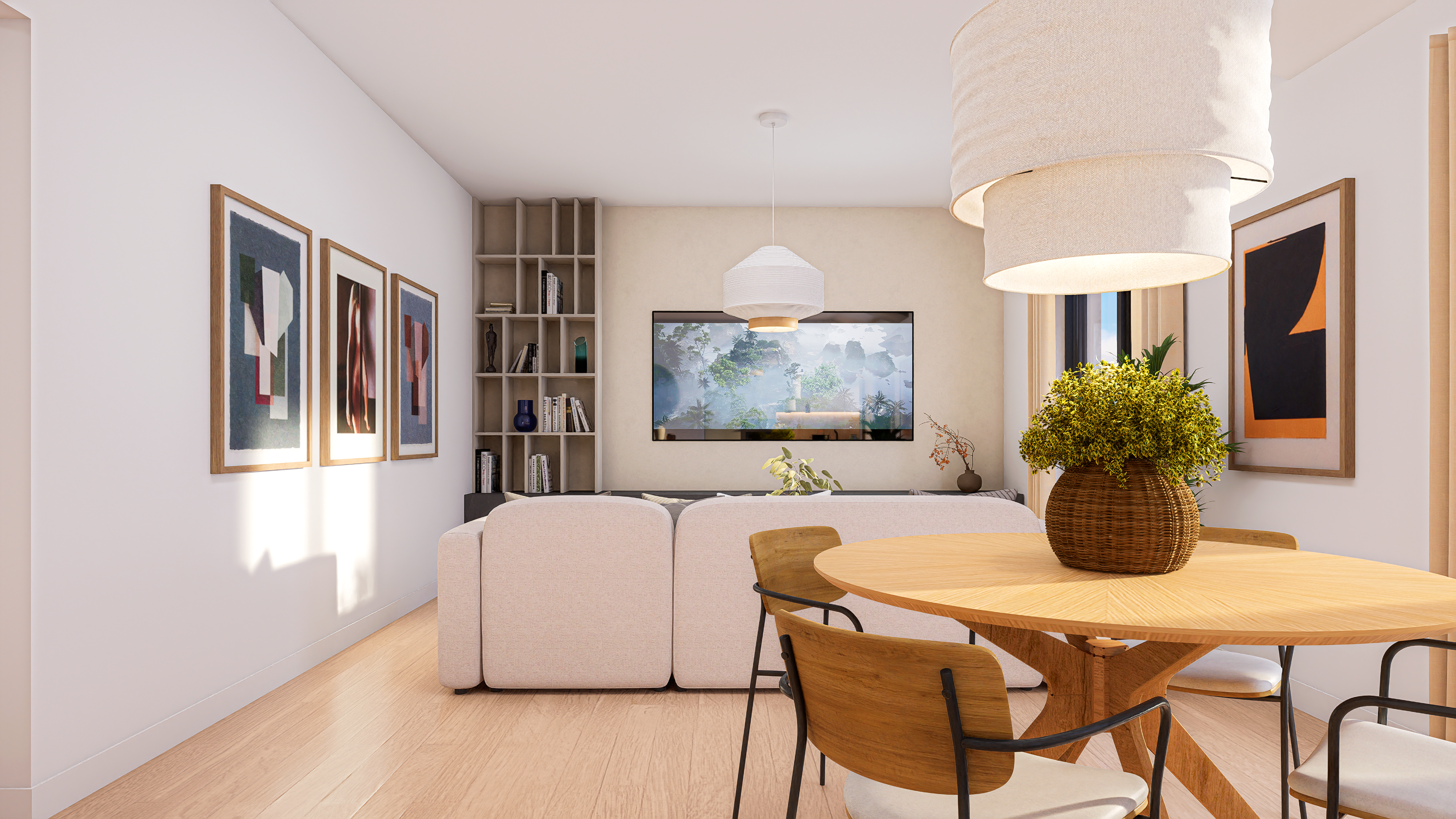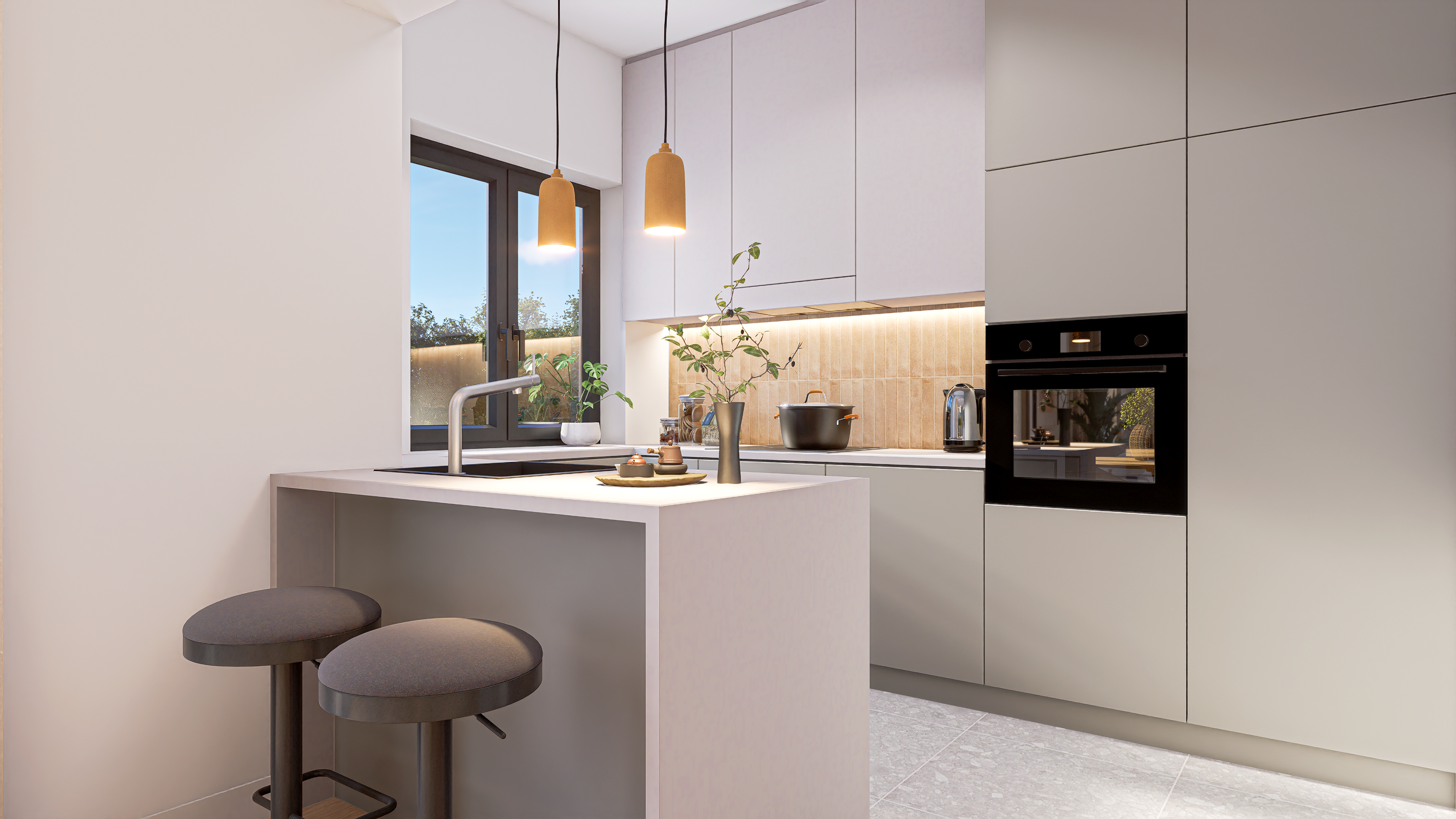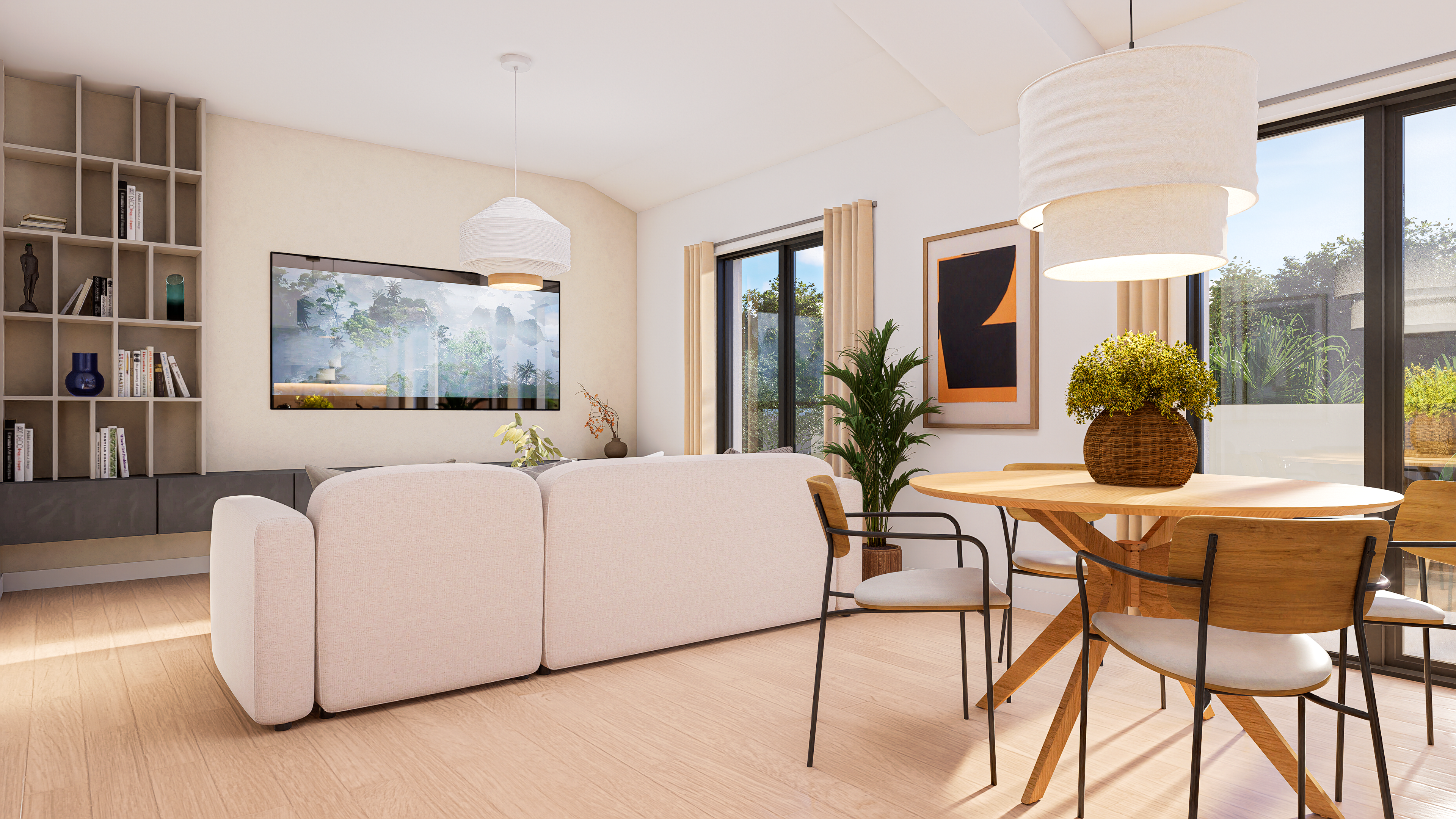 A bright contemporary interior inspired by Mediterranean living – natural materials, warm tones, and an emphasis on daylight.